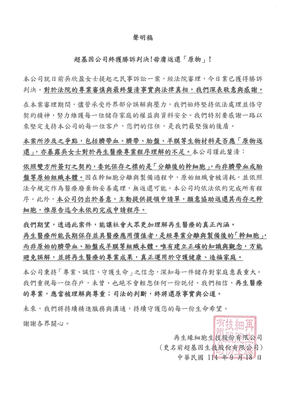 再生緣細胞生技臍帶血保存中心 給您一輩子的安心